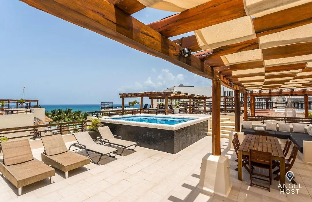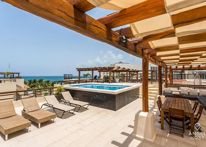 Situated 2.4 km from the Bel Air Animal Park, Oceanview Private Rooftop Pool, Steps To Mamitas Playa del Carmen villa invites guests to relax at a terrace.